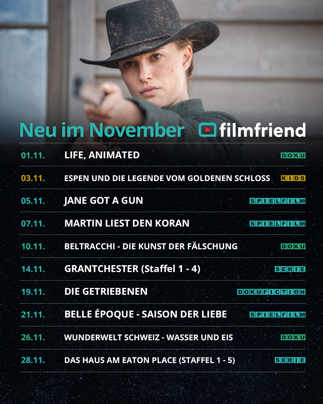 Hier finden Sie die Liste der Neuzugänge bei filmfriend im November