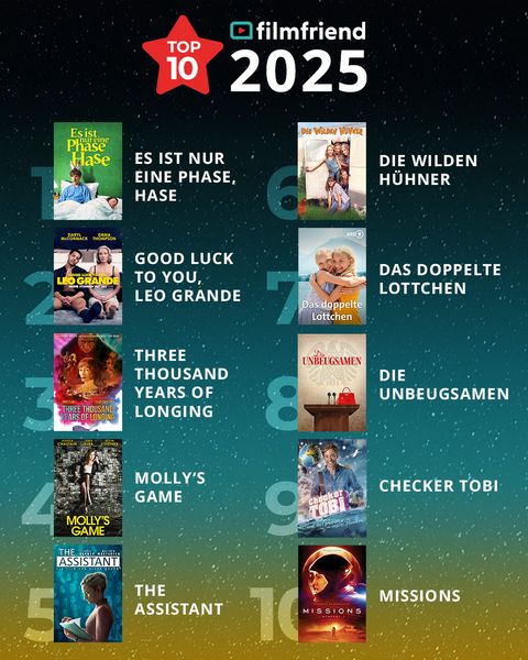 Spannende Geschichten, herausragende Schauspielkunst, emotionale, aber auch humorvolle Momente: die Streaming-Favoriten 2025 der filmfriend-Nutzerinnen und -Nutzer bieten all das und noch viel mehr!