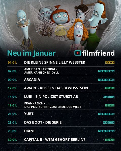 Hier finden Sie die Liste der Neuzugänge bei filmfriend im Januar