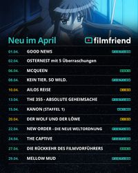 Hier finden Sie die Liste der Neuzugänge bei filmfriend im April